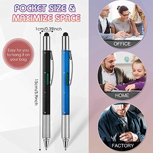 6-in-1 Design: these gadgets pens have 6 functions: ballpoint pen, stylus pen, ruler, level gauge, cross screwdriver and slotted screwdriver; 6-in-1 Multi-tool pen is a practical gadget in your daily life and work, provides you with more convenience