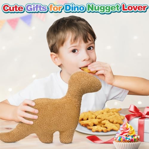 Chicken Nuggets Plush: Turn delicious dinosaur chicken nuggets into a realistic food pillow, filled with premium PP cotton. The brown fur which looks like the breading of a real nugget in person. The plush texture feels soft and fuzzy, which makes for the perfect cuddle companion!