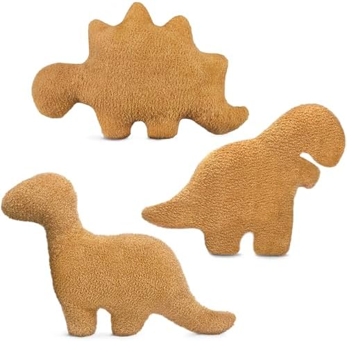 Dino Chicken Nugget Pillow: Adorably cute and soft with added nostalgia from childhood dinners. You will love showing your family or friends and immediately seeing their smiles of surprise and delight. The whimsical decor addition will have everyone wanting one. This is a cute plush that makes a great gift for teen girls, teen boys, boyfriends, girlfriends, brothers, sisters, men, women.
