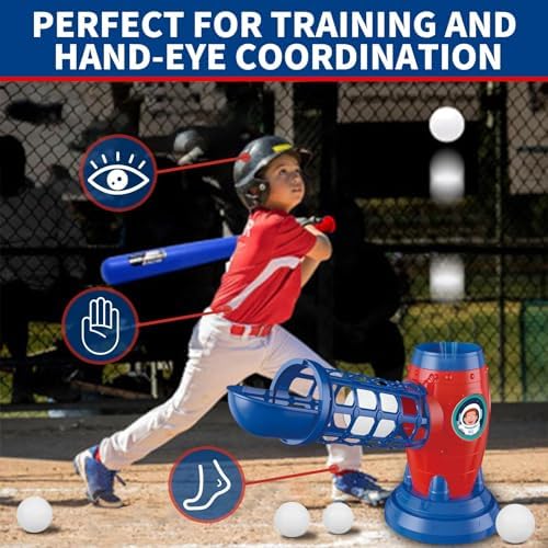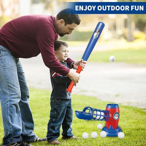 Cewuky T Ball Sets for Kids 3-5 5-8, Kids Baseball Toys with 5 Balls/RC Pitching Machine/Adjustable Batting Tee, Sports & Outdoor Toys for Toddlers Boys & Girls, Tball Games for Kids Ages 3–12 Years