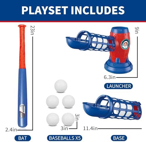 What will get in T-BALL SET – Tee up some fun! This outdoor toys for kids ages 4-8 is perfect present for your little MVP. This baseball toy includes 1*Remote control batting machine, 1*stretchable bat, 5*balls. Tee Ball Set with durable accessories is great for learning how to properly swing a bat and hit the ball. Ideal for developing confident little ball players.