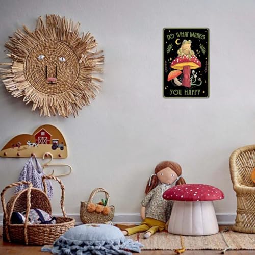 CrazySign Funny Mushroom Decor Frog Decor Do What Makes You Happy Sign – Cute House, Home, Bedroom, Kitchen, Bathroom, Forest Room Nature Wall Decor, 12 x 8 Inch (3029)