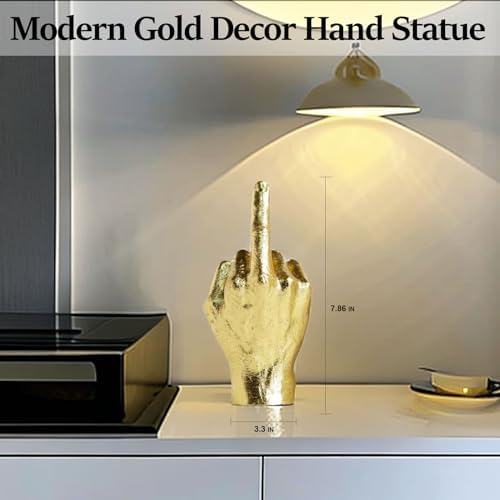 DECOUE Gold Decor, Gold Gesture Statues and Sculptures, Resin Gesture Hand Sculpture Finger Statues Classic Home Decor, Home Shelf Desk Decor Gifts for Familys & Friends – Middle Finger