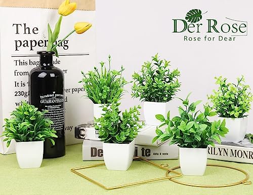 Der Rose 6 Packs Fake Plants Mini Artificial Plants for Home Office Farmhouse Bathroom Shelf Decor Indoor