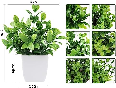 【Dimension】Pots: 2.5″D×2.7″H, all fake green plants are about 6.5”-7”, the compact design is suitable for decoration anywhere, such as bathroom decor