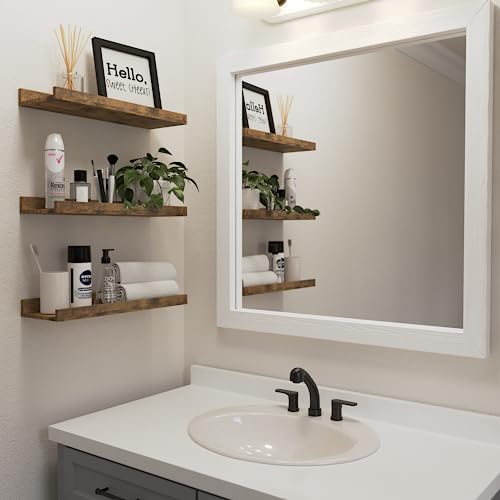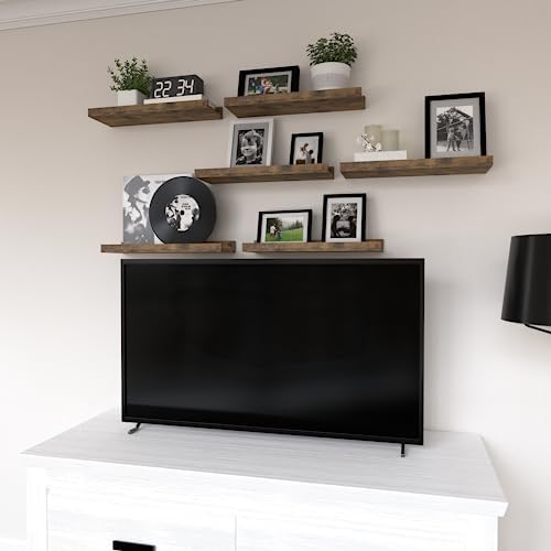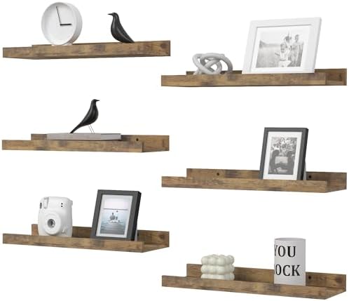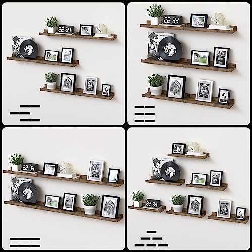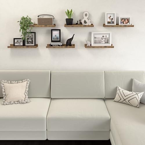 DOLLFIO Floating Shelves Set of 6, Farmhouse Wall Shelves with Lip, Display Shelves for Wall Decor, Rustic Picture Ledge for Living Room, Bedroom, Nursery, Bathroom, Pictures, Books, Plants- Brown