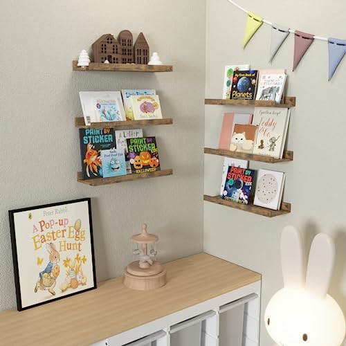 【Versatile Storage Solution】- This set of 6 wall shelves really works in a variety of home decor situations for a variety of purposes. Whether you plan to create a whole wall with art and memories in the living room, stash bathroom accessories or necessities including hand towels, toothbrush holder and bathroom canisters, organize kitchen essentials such as spices and seasonings, or enhance kids’ room or nursery decor, these wood shelves offer a multitude of functions.