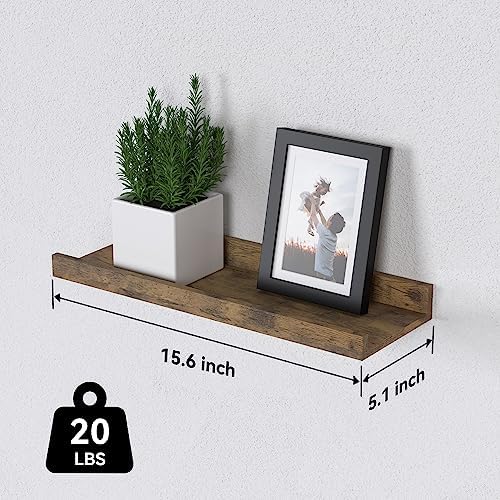 DOLLFIO Floating Shelves Set of 6, Farmhouse Wall Shelves with Lip, Display Shelves for Wall Decor, Rustic Picture Ledge for Living Room, Bedroom, Nursery, Bathroom, Pictures, Books, Plants- Brown