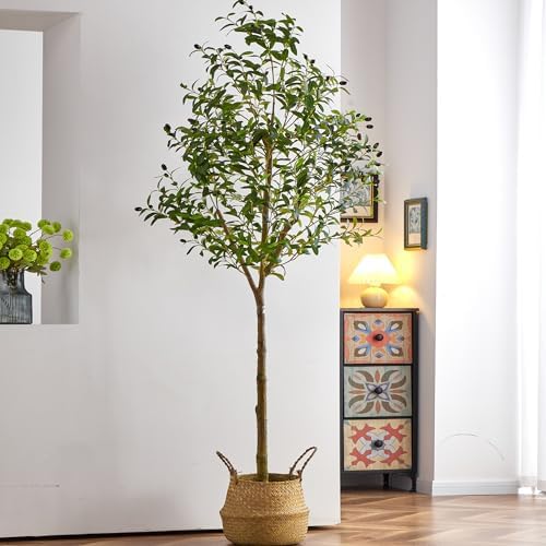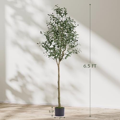EnHomee Olive Tree, Faux Olive Tree with Realistic Leaves and Lifelike Fruits Tall Olive Tree Artificial Indoor Nearly Natural Fake Tree for Home Office Living Room,6.5FT
