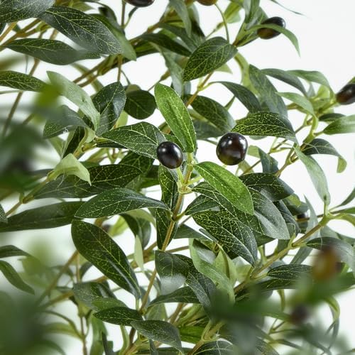 【FULL & REALISTIC DESIGN 】Professional crafted design to mimic the appearance of a real-life olive tree, the olive tree 6.5 ft consists of more than 1200+ textures real leaves and dozens of lifelike olives, the large olive branch is very full and lush after opening. The leaves made of silk material are full, olive fruit dotting the branches, the trunk color is close to the brown color of the real olive tree artificial indoor, the green moss in the pot make fake olive tree looks more realistic