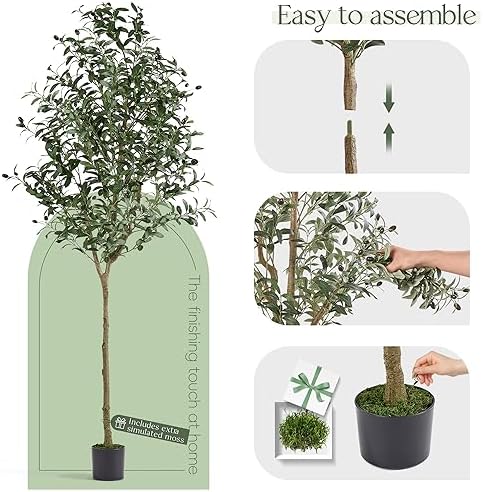 【EASY TO ASSEMBLE & SWEET SERVICE 】Our faux olive tree 6.5 ft can be assembled in just a few minutes, and if you have any questions, we’re here to help. We’ll respond within 24 hours, though our simple assembly may not even require you to contact us. Give it a try and see how easy it is to enjoy this beautiful tall fake plant in your home or office!