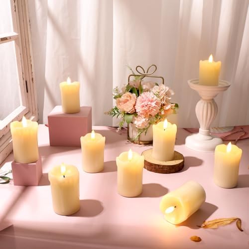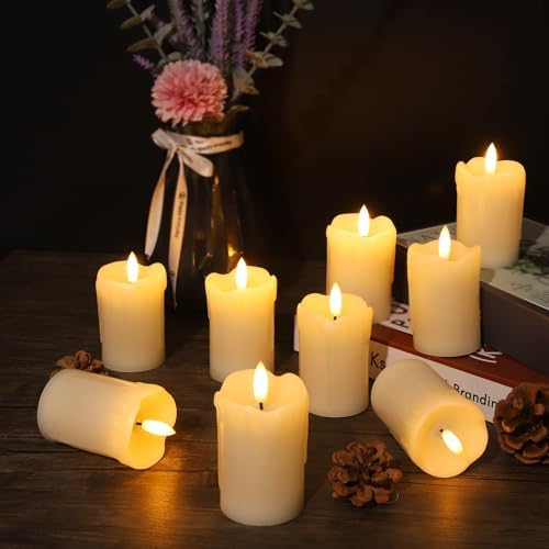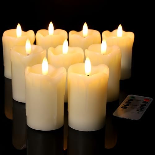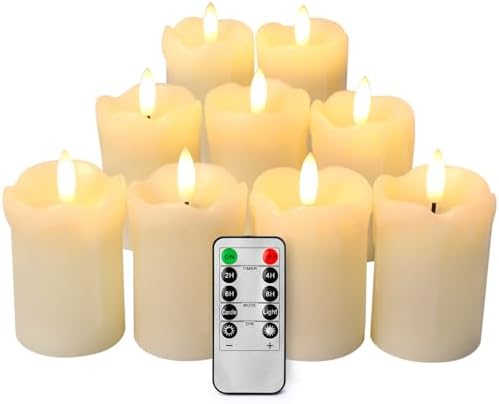 Enpornk 9 Pack Flameless Votive Candles with Timer Remote,2″ x 3″ Real Wax, Realistic Black Wick Battery Operated Pillar Candles for Wedding, Party and Holiday Decoration