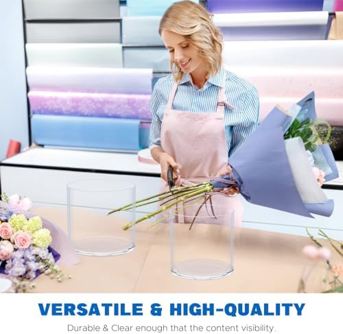 Flower Clear Vase Centerpiece for Home 1-Set of 2 Sizes, Wedding Party, Plastic Clear Cylinder Wide Vase for Flowers, Decorative Wide Mouth Vase for Decor, Centerpieces, Large Clear Container