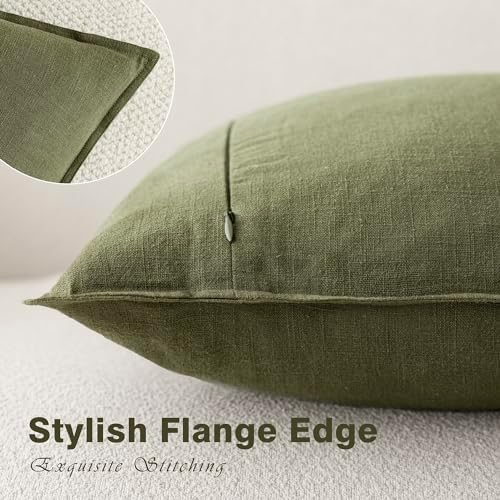 Foindtower Pack of 2, Decorative Linen Soild Throw Pillow Covers Soft Accent Cushion Case Boho Farmhouse Pillowcase for Chair Couch Sofa Bedroom Living Room Home Decor 24 x 24 Inch Olive Green