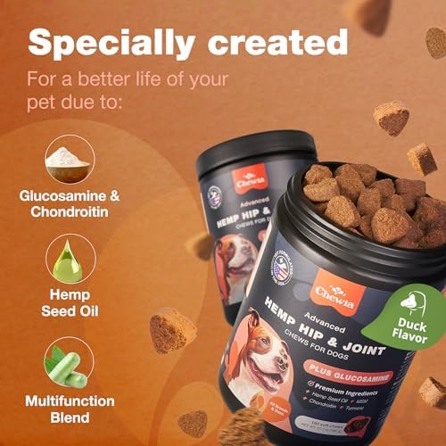 Glucosamine for Dogs – Hip and Joint Supplement Dogs – Glucosamine Chondroitin Dog Chews with MSM – Dog Hip and Joint Supplement – Hemp Hip and Joint Chews for Dogs – Mobility, Skin & Coat Health