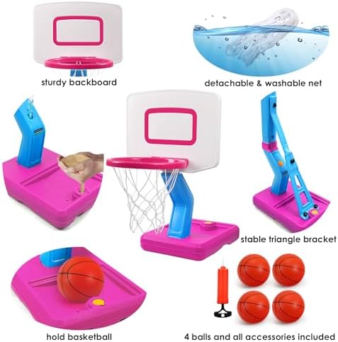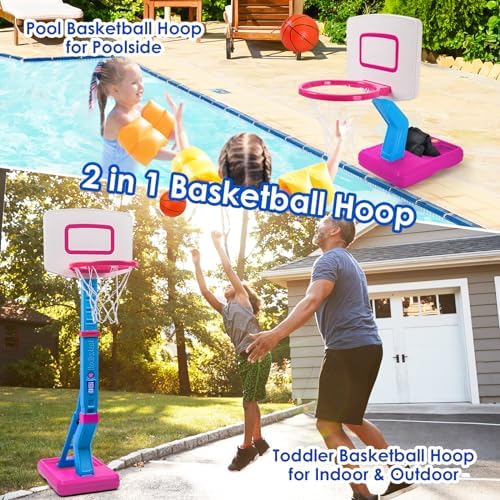 Jugana Toddler Basketball Hoop Indoor/Outdoor Kids Mini Poolside Basketball Goal with 4 Balls Adjustable Height Basketball Game for Toddler Kids, Christmas Birthday Gift for Boys Girls Age 3 4 5 6 7 8