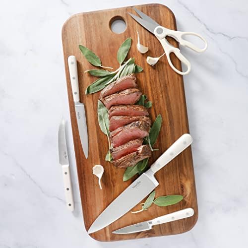 MARTHA STEWART Eastwalk 14 Piece High Carbon Stainless Steel Cutlery Knife Block Set w/ABS Triple Riveted Forged Handle Acacia Wood Block – Linen White