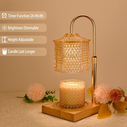 NELICOND Candle Warmer Lamp,Electric Candle Warmer with Timer,Dimmable Candle Lamp,Electric Candle Melter, Compatible with Small and Large Candles, Aromatic Candle Holders for Home Decor (Amber-1)