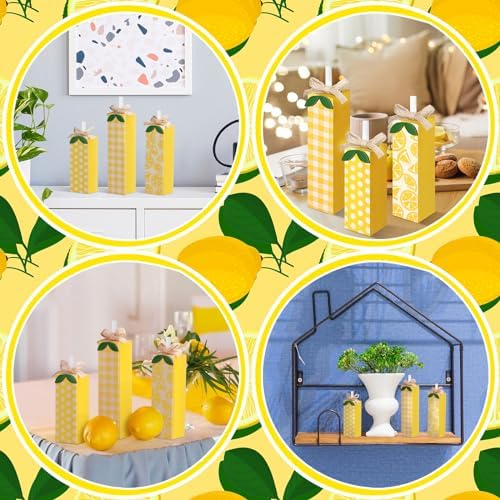 Seeloowy 3 Pcs Wooden Block Tiered Tray Decor Retro Wooden Tabletop Sign for Farmhouse Home Table Decor (Lemon)