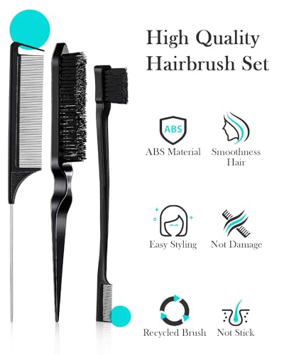 【Brushes is a must-have for your daily life】Edge Brush for combing eyebrows and eyelashes dual-use, rat tail combs for distributing and combing your hair, teasing comb is a fluffy must-have, 3PCS hair brushes professional hairdressing tools are a no-brainer.