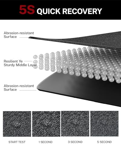 VIBRATION ABSORPTION: The mat efficiently absorbs vibration, reducing noise generated by various equipment types, and extends the lifespan of your fitness gear. It provides cushioned rebound for a comfortable workout experience