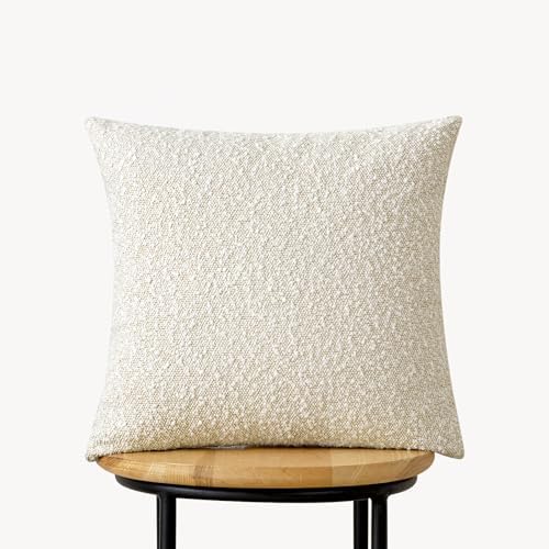 Woaboy Pack of 1 Decorative Throw Pillow Cover Pillowcase Textured Boucle Square Sofa Couch Pillow Home Decor for Living Room Woven Modern Cushion Case 24 x 24 Inch Beige