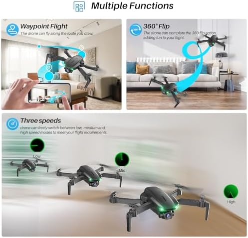 [Multifunctional Drone] Enjoy intelligent features such as flying along a set path, gravity sensing, 360° flips, headless mode, and 3-speed adjustment for easy control.